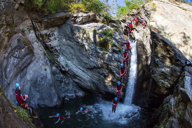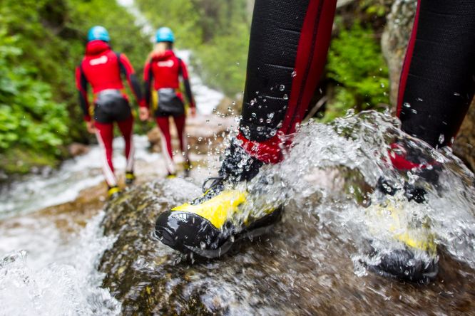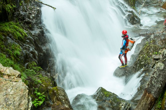 Die Auer Klamm in Taxegg bei Oetz ist nicht umsonst die bekannteste Canyoning-Strecke Österreichs. Denn hier wird Schluchtenwanderern rund fünf Stunden lang einiges abverlangt. Bis zu 18 Meter lange Rutschen, gut 40 Meter hohe Abseiler und ein Sprung aus über 10 Metern Höhe warten darauf, mit einer gehörigen Portion Mut bezwungen zu werden. Entsprechende Erfahrung ist Grundvoraussetzung für die Teilnehmer an den von den Ötztaler Outdoor-Spezialisten angebotenen Touren durch die Auer Klamm. Etwas weniger anspruchsvoll, aber nicht minder spannend bietet die oberhalb gelegene Alpenrosenklamm jede Menge Wasserfälle, Gumpen und Rutschen. Diese Canyoning-Tour ist auch für Einsteiger geeignet.