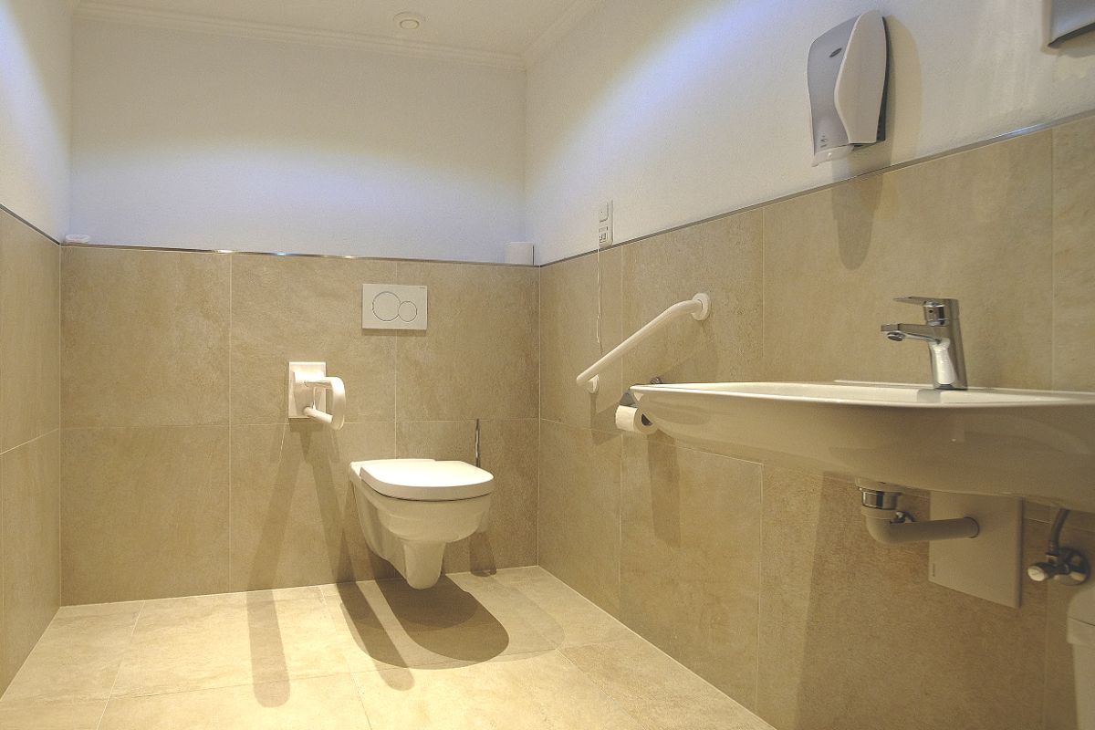 Ein barrierefreies und behindertengerechtes WC befindet sich im 1. Untergeschoß und kann bequem mit dem Lift erreicht werden. Sauna und Wellnessbereich ist für Rollstuhlfahrer nicht geeignet.