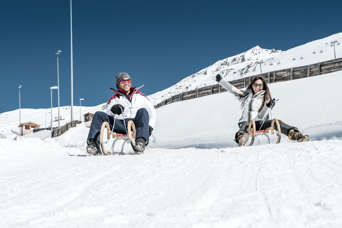 Nächste Challenge ist die leichte Rodelbahn von Ochsengarten auf die Feldringalm (1.888 m), die Familien in knapp einer Stunde gemütlich erwandern. Immer vor Augen: die stärkende Einkehr in der Feldringalm und die 2,2 km lange Abfahrt über knapp 200 Höhenmeter. Wer keine eigene Rodel besitzt, leiht sich beim Hüttenwirt eine aus. Weitere Naturrodelbahnen gibt es in Niederthai, Längenfeld, Gries und Sölden. Sie bieten mit teils bis zu 6 Kilometern Länge noch ausgedehnteren Downhillspaß.