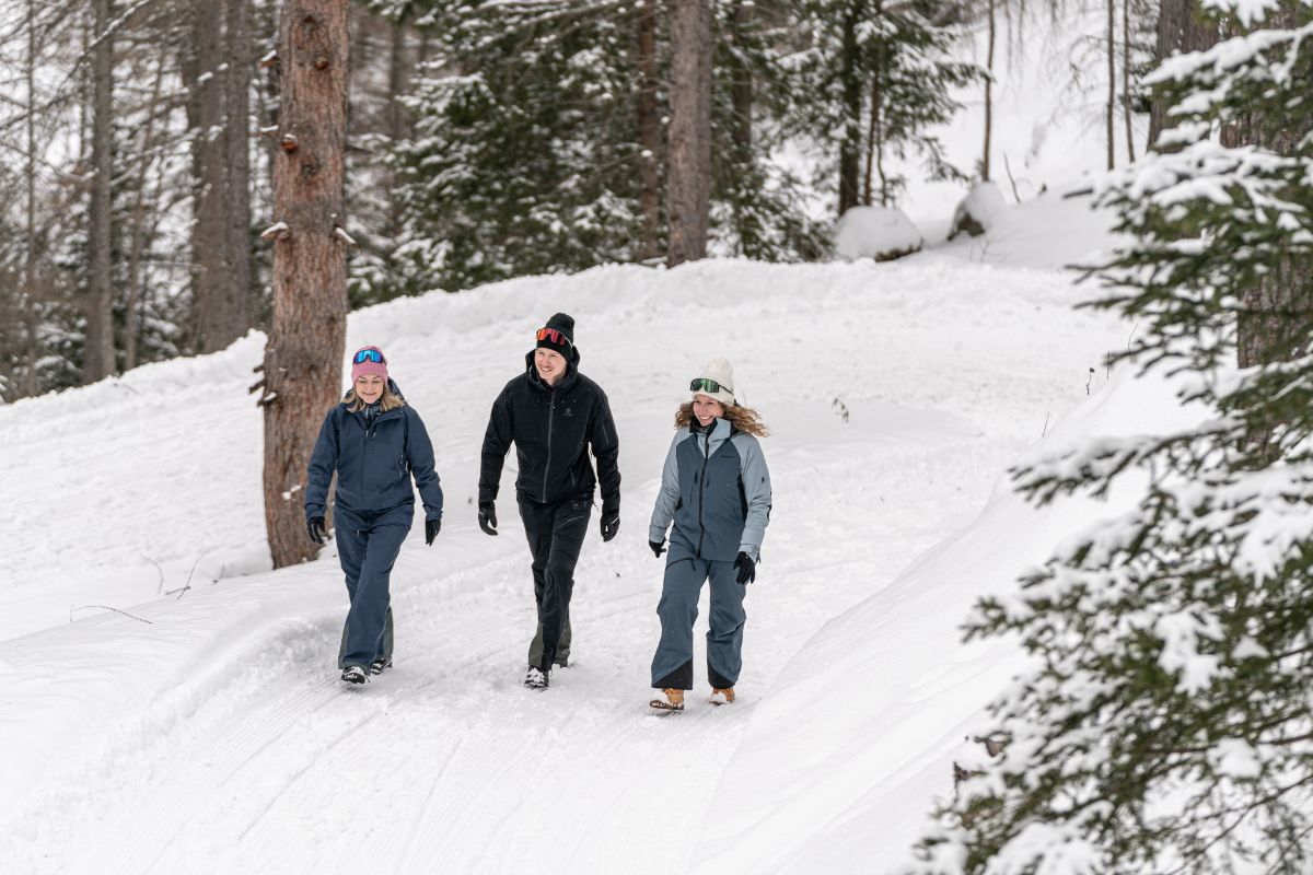 Das Rundum im eigenen Tempo entdecken. Am besten gelingt das von Zwieselstein aus mit einer gemütlichen Schneeschuh- oder Winterwanderung. In alle Himmelsrichtungen führen von hier Winterwanderwege und Steige durch verschneite Wälder und entlang rauschender Flüsse. Nur das Knirschen des Schnees unter den Füßen unterbricht die Stille der Natur.