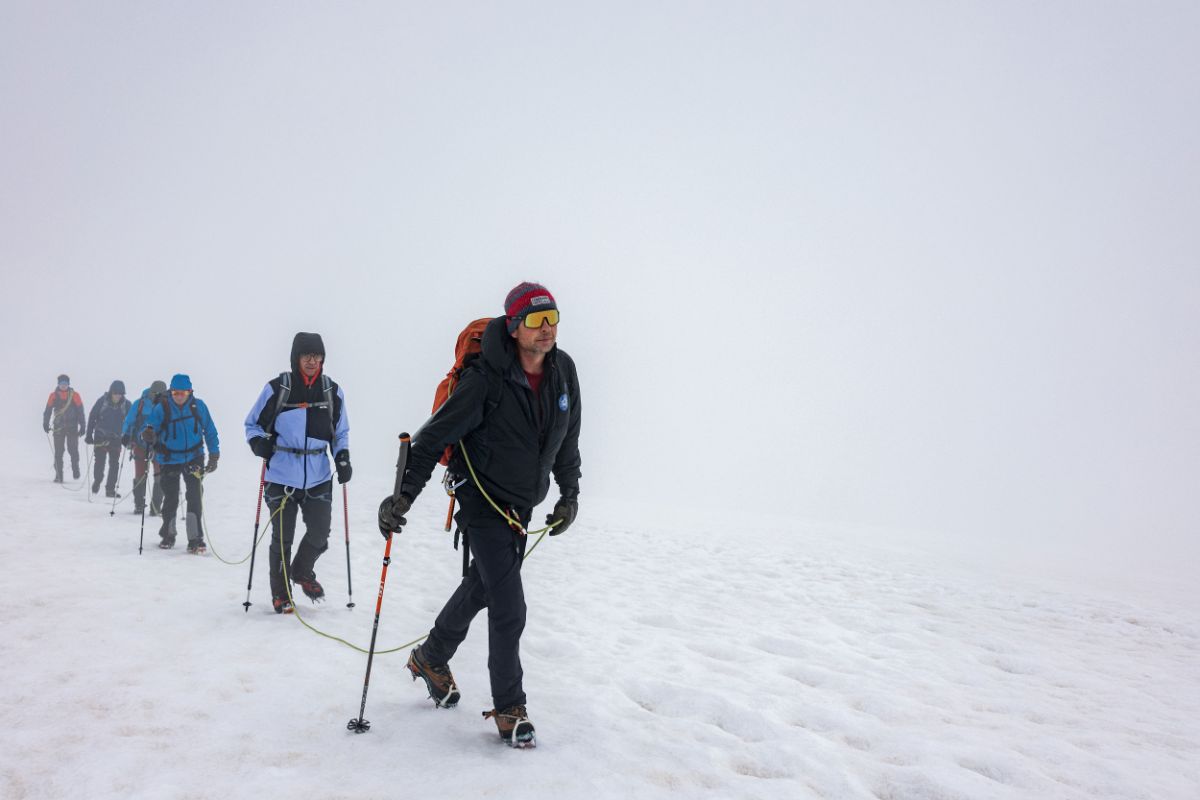 Wie der Name schon sagt, brauchst du für diese Tour keinerlei hochalpine Erfahrung. Unsere Spezialisten vermitteln dir alles, was du wissen und können musst, um Dreitausendergipfel wie den Similaun sicher zu besteigen. Zum Beispiel spezielle Knoten- und Seiltechniken, die richtige Steigeisentechnik und das Überqueren eines Gletscherfelds.