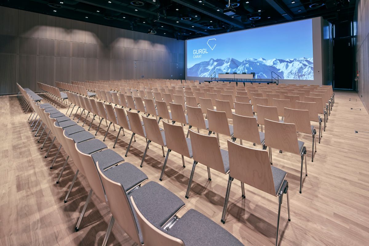 Hochwilde is a seminar room for conferences with up to 336 people. Floor-to-ceiling windows guarantee sufficient daylight in the hall, but can also be completely darkened if necessary. Due to the size of the room, a mobile stage is also included in the rental price. The combination of Hochwilde with the large gallery is particularly attractive. After the conference, you get together in the light-flooded catering area which is just perfect for coffee breaks and lunch with a spectacular view.