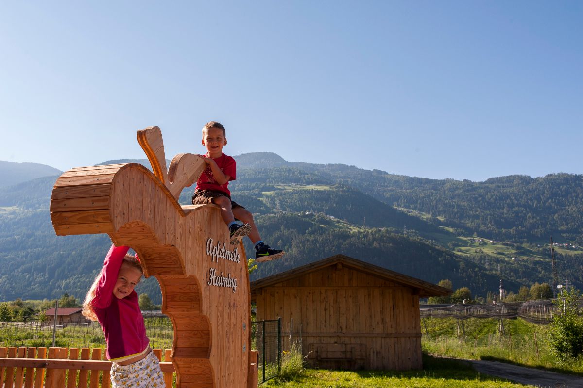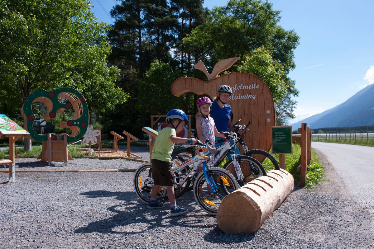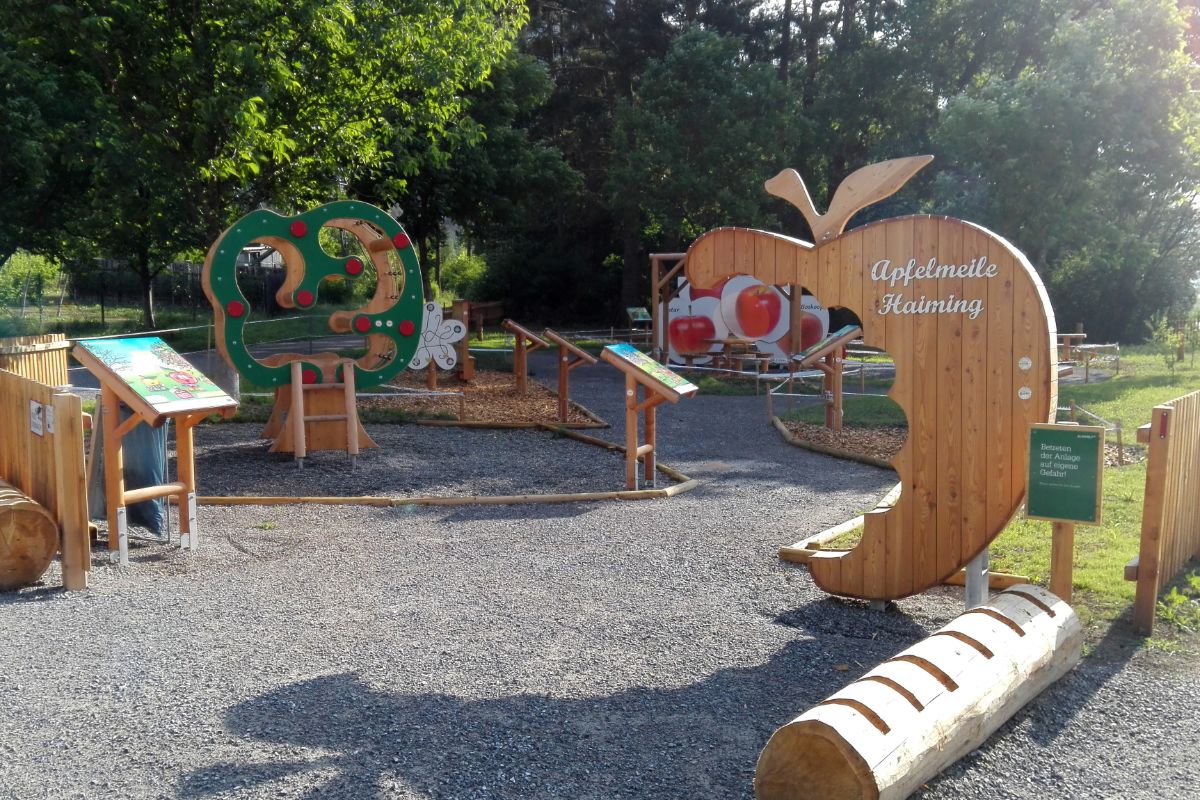 Along the scenic Apple Mile, apple granny Gala explains to her little grandchild Elstar many interesting facts about her favorite apples. Information is displayed on boards and panels suitable for both children and adults. Eight interactive stations add to a memorable excursion: even the youngest children will understand how a seed becomes a tree, what the interior of an apple looks like and which types of apples grow in the surroundings of Haiming. Additionally, slacklines and seating units – in the shape of an apple – invite you to take a break and wind down. An oversized recipe book contains a huge variety of apple delights. Don't wait any longer and grab your bicycle or lace up your walking boots to explore the new attraction for all ages at Haiming's Apple Mile on the Inn cycle path!