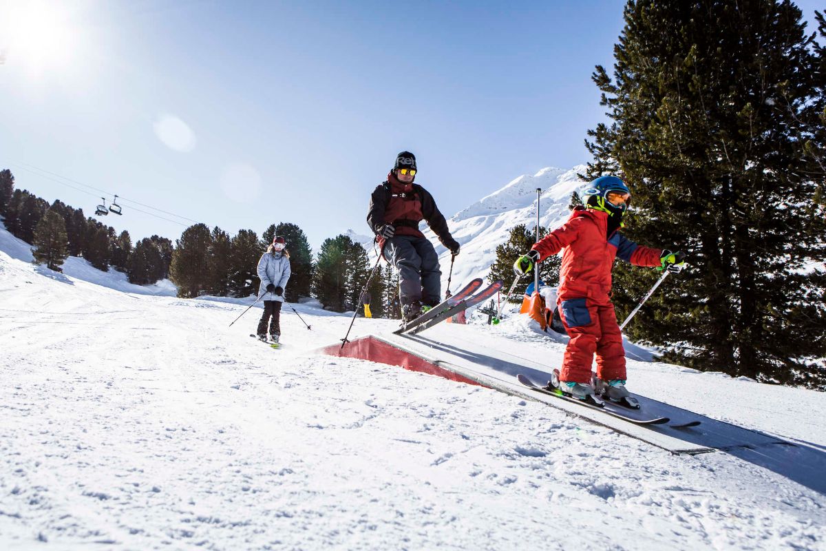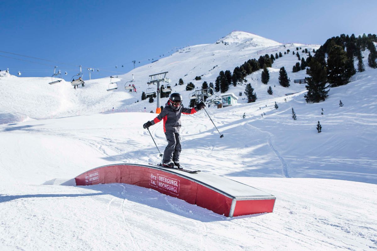Early practice makes the master when it comes to freestyle sports - the best snow playground can be found in Obergurgl: the new Family Park next to Bruggenbode lift at 2120 m altitude offers prime conditions for the youngest shred heads and freestyle beginners. Butter boxes, rainbow boxes and kickers with a table length of 2 and 3 meters are just perfect obstacles to improve your basic freestyle skills. Everything in the park is designed to celebrate the first successful training units by increasing the fascination of freestyling.