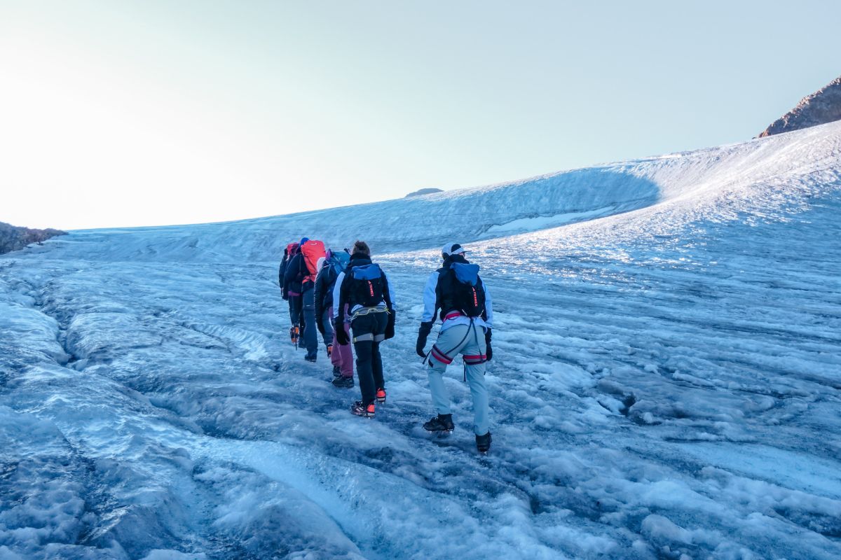 As the name suggests, you don't need any previous experience on similar mountain tours for this package. Our specialists will guide and accompany you safely through the adventurous glaciers and three thousand meter high peaks. All the necessary knowledge such as knot and rope technique, crampon technique and correct glacier crossing will be taught on site. Nevertheless, the tour to Fluchtkogel with 2 days on the glacier is not a walk in the park. In order to cope with the physical effort, you should be an experienced hiker and in a very good physical shape - walking times of up to 6 hours should not overwhelm you. This tour is just right for you if you want to take mountaineering to the next level - without any organizing, without risks, just focusing on the mountain scenery and enjoying the tour.