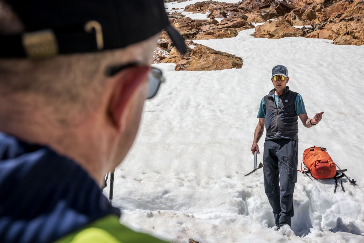 Off we go! After the final equipment check, we start the climb to the first stage of the main tour: Brandenburger Haus. The mountain guide joins the group during a stopover at Hochjoch Hospiz. Well prepared and looked after, we cross Kesselwandferner glacier in a group, which forms Austria’s largest connected glacier areas together with Gepatschferner. Before spending the night in the hut - if the conditions are right - we admire the sunset on Dahmannspitze (3,397 m), about a 20-minute climb above the night camp.