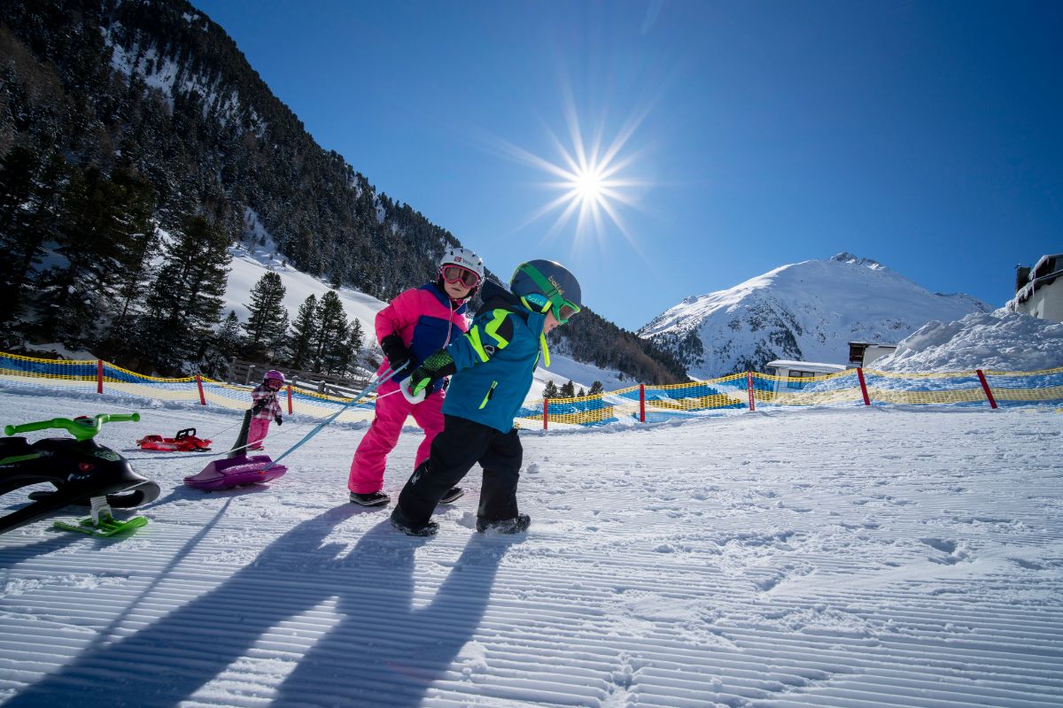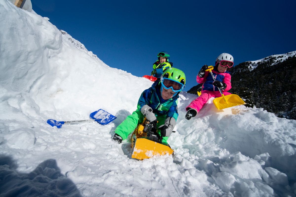 Snow creates a peaceful, calm and heartfelt atmosphere in Vent. The cold and clean air in combination with the altitude lets kids get tired and the parents can enjoy a quiet evening. Please be reminded, the snow playground is not being supervised! Cold conditions turn the snow into ice. Please be careful when running around the snow playground. Some attractions might get really slippery.